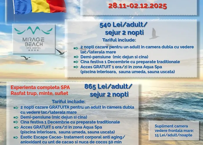 Questo hotel a 4 stelle offre una sistemazione nel distretto Lungomare di Eforie Nord, nelle immediate vicinanze di Plaja Ingrid. L'hotel Mirage Beach Spa è adiacente alla Falesia di Eforie Nord, a soli 7 minuti a piedi. Questa struttura anche ti porterà al Monastero di Santa Maria di Techirghiol, che si trova a circa 3 km. La stazione degli autobus Zimcom è a 650 m da questo hotel.